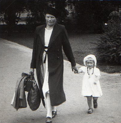 Alli ja Anneli Lehtilä kuvattuna matkatamineissaan Turussa noin vuonna 1945.