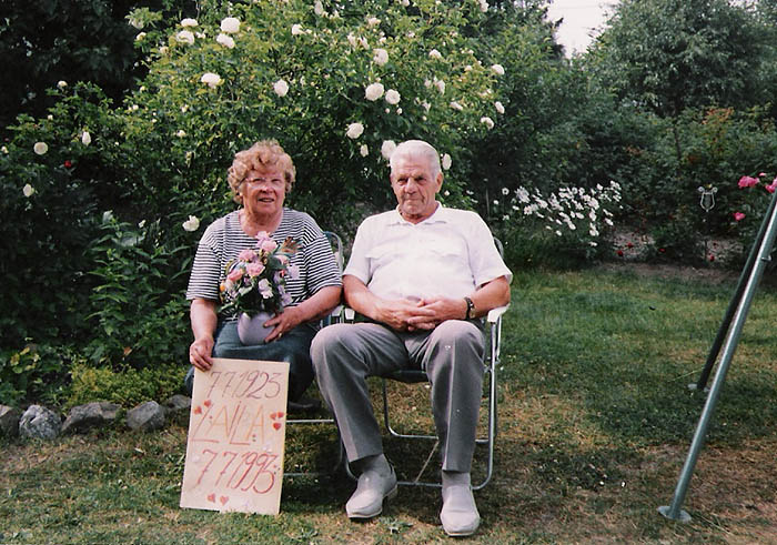 Pekka ja Laila Toivonen Mäntyharjun pihalla vuonna 1993.